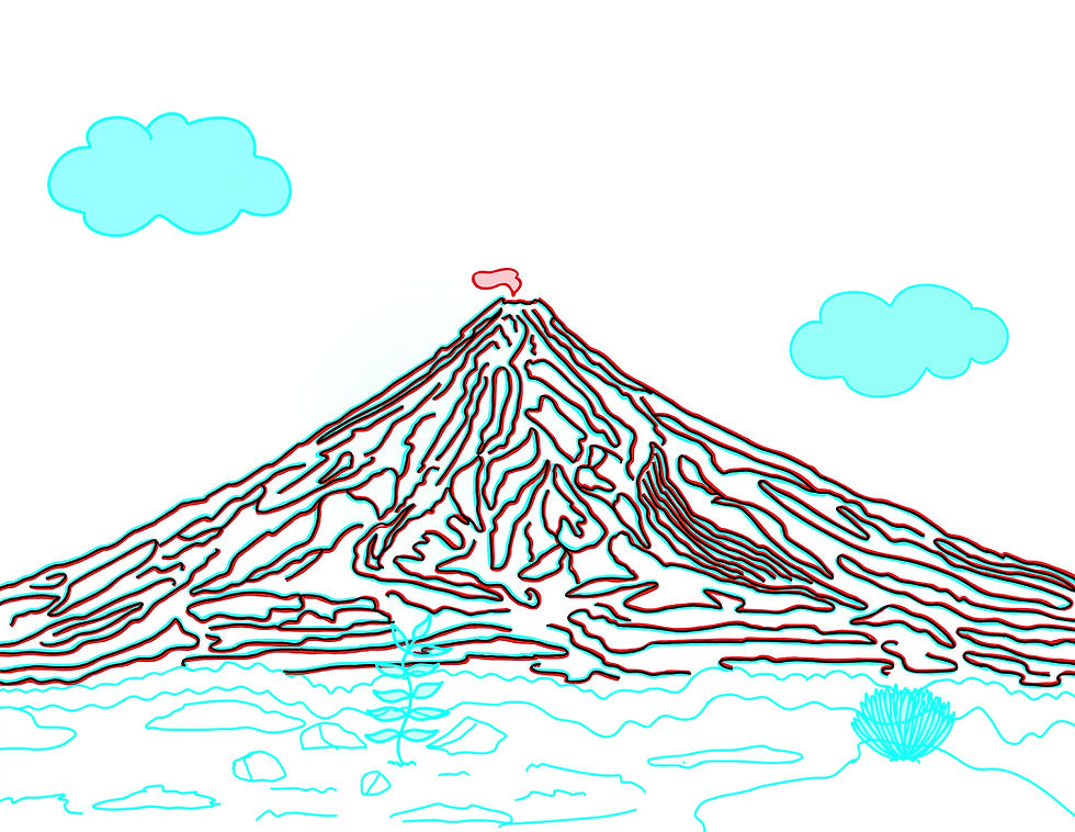 An installation that explores the relationship between perception and the physical world, utilizing an animated depiction of a volcanic eruption and a pair of oversized 3-D glasses to illustrate this concept. The viewer, by donning the glasses, is presented with two distinct perspectives: through one lens, the destructive force of the volcano is highlighted; while through the other, the cyclical nature of the surrounding plant life is brought to the fore. The installation encourages the viewer to step back and consider the broader picture, recognizing that even the most destructive events can also bring about new growth and renewal.